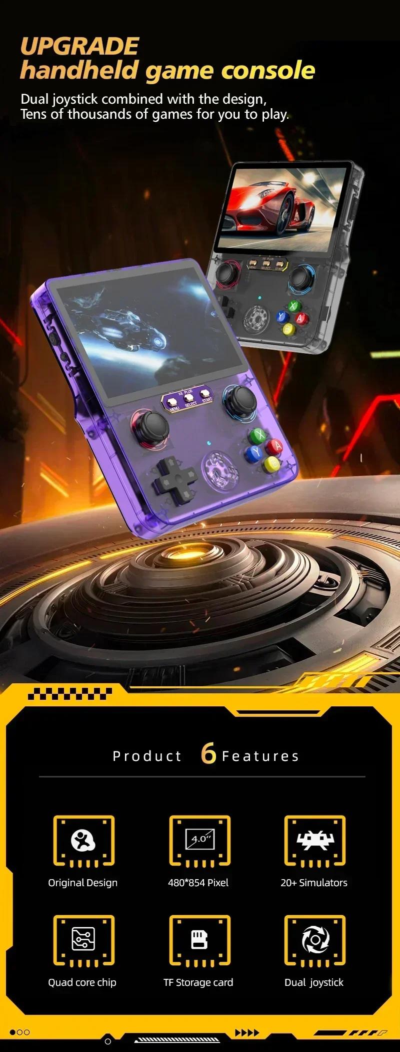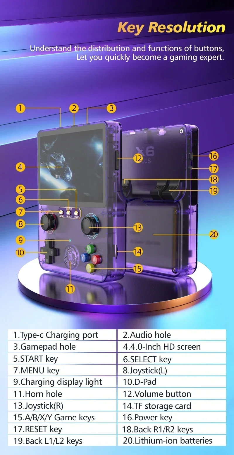 1. High-Resolution Screen: Featuring a 4.0 inch IPS high-definition full-fit color screen with high resolution, this handheld game console provides delicate and soft colors that reduce eye fatigue effectively.